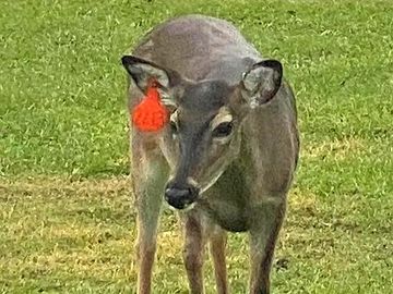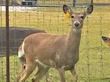 Hi, I’m Persi. I’m the only doe here with an orange tag because I come from a different family than the other mommas. My name comes from the persimmon, a bright orange fruit deer love just as much as I do. I’m known around the farm for being the most playful.